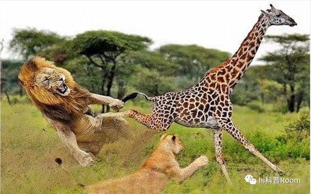 而且更可怕的是长颈鹿有一个最大的杀手锏,就是它们致命的大铁蹄。据科学家研究表明,长颈鹿的蹄子直径大约在30厘米左右,高度大概在15米左右,如果长颈鹿全力奔跑时铁蹄踢向对方的踢力就相当于产生大约2000磅左右的力量攻击,这大概就相当于人类最牛拳王重拳出击能量的2倍多。毫无疑问长颈鹿这一踢估计就可以一脚把狮子踢飞了。