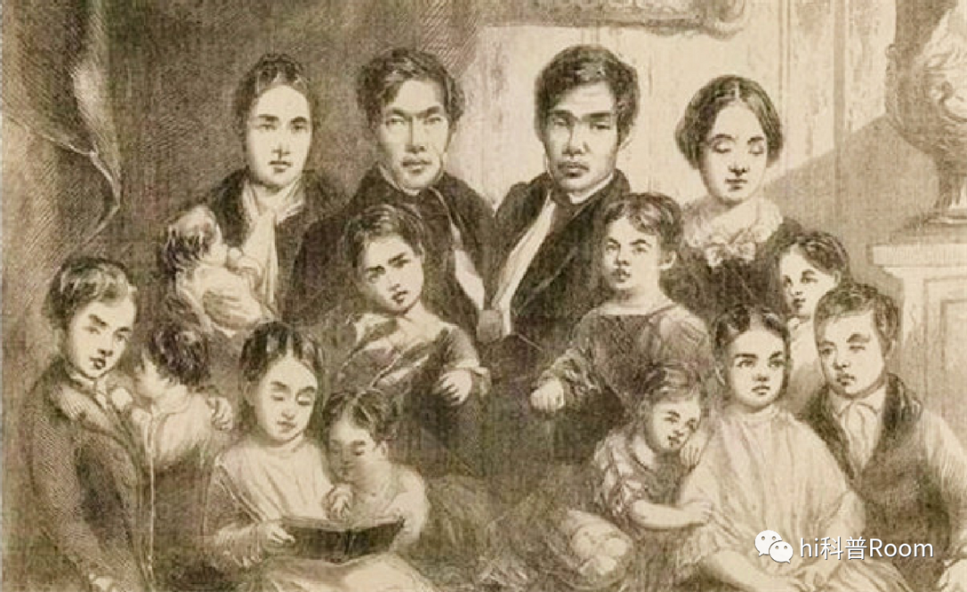 于1811年泰国暹罗出生的一对连体男婴恩(Eng)和昌(Chang),62年的生命时光中娶妻生子,养育有22名子女,并获得了美国公民资格,至此“暹罗双胞胎”(Siamese twins)才成为连体人的代名词。