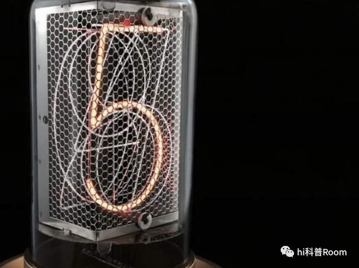 一般在制作数字显示器的时候,都会在真空管里放置一些用金属丝制作而成的阳极和阴极,其中发光的阴极形状是数字1-9。里面有1个阳极金属网和10个数字形状的阴极金属网,通过辉光现象,阴极附近会发出橘红色的光,由此展示1-9的数字形象。简单来说就是一个拥有10个不同形状灯丝的灯泡,这在当时是一种突破性的技术。