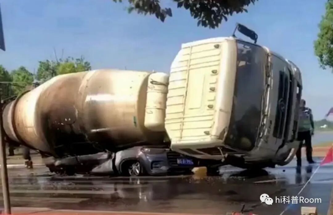 2022年8月23日7时左右,安徽省铜陵市发生惨烈车祸,一辆水泥搅拌车,在马路中央突然发生侧翻,巨大的水泥罐不偏不倚,把同向行驶的小轿车,整个压在罐底。据事故目击者张先生回忆,水泥罐压过来时,小轿车承受不住巨大的重量,一瞬间就被压成饼状。他猜测是电路受损引燃汽油。小轿车立即燃起大火,水泥车罐体被烧黑,现场状况十分惨烈,想救援都无法靠前。当地公安、消防、医疗等部门,在接警后第一时间赶到现场,安排吊车将搅拌车吊起,下边的小轿车,车厢踪影全无,完全成为废铁。