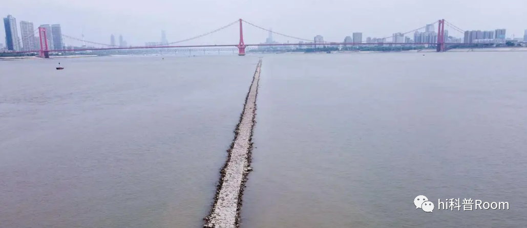 直到有人道出真相:其实这是长江航道的护坡,用于防止泥沙淤积堵塞航道。与鹦鹉大桥同期建设。往年在冬季枯水期也会露出水面,只是今年由于特殊的“汛期反枯”现象,才在夏季被人发现。