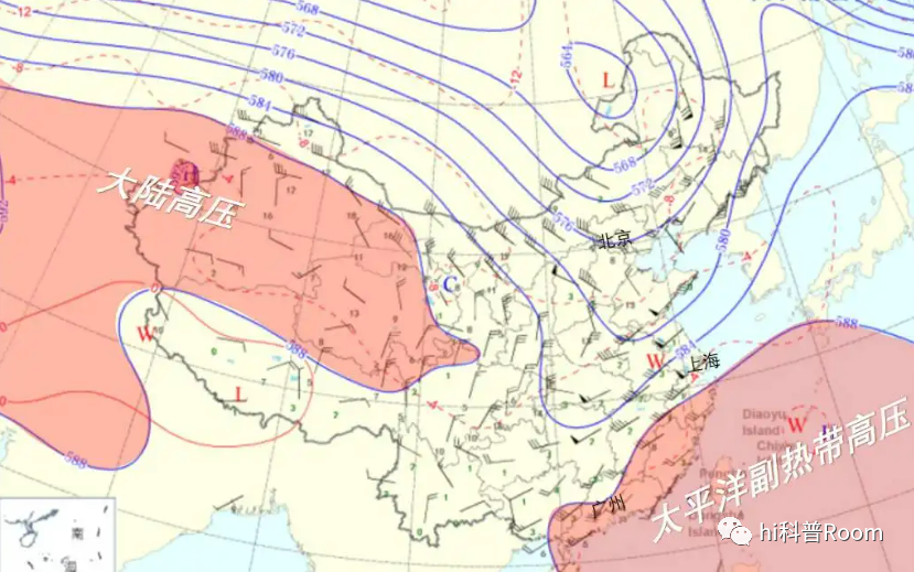 造成我国今年如此极端天气的主因是北非-伊朗高压带向东发展跨过青藏高原和我国的大陆高压连成一片,并且长时间控制我国大部分地区,与西部高原形成一个异常强的暖高压。与此同时,西太平洋副热带高压异常强盛,使得整个长江流域盛行下沉气流,导致了长江流域地区维持的晴热少雨天气。