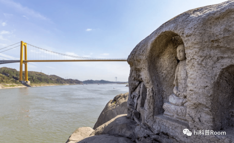 受高温影响,长江重庆段水位大幅下降,34个县多达66条河流干涸。在巴南区双河口镇附近,常年淹没在江水中的佛爷梁岛礁露出水面。人们发现礁石最高处有三龛摩崖造像。该雕像是一个坐在莲花座上的和尚,经专家鉴定为明清时期所建,距今已有六百年历史。