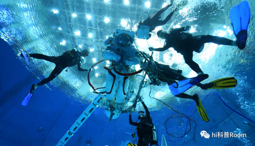 水槽里面有个同比布置的核心舱模型,航天员进行训练前会穿上特制的带有铅块的训练服。这个训练服的重量控制精准,让他们入水后浮不上来也潜不到水底。通过中性的浮力训练,让航天员体验在失重环境下身体的运动姿势。航天员们还能通过水中的核心舱模型,练习出舱活动中的操作步骤及多个复杂的单项训练。
