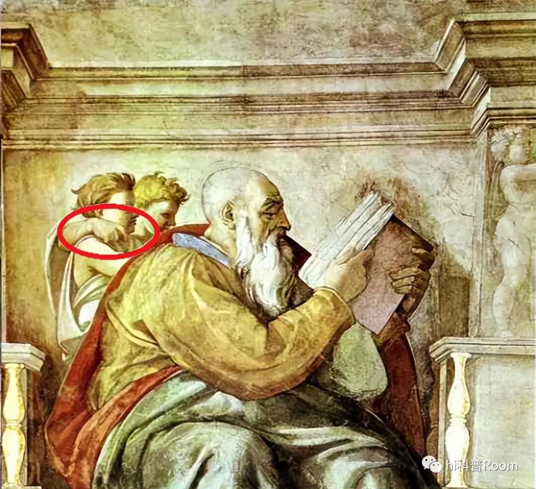 这种游戏更像是一种亲子互动,似乎也符合作品的含义,因为上帝让先知享受天伦之乐。但米开朗基罗的想法却是,将位高权重的教皇比喻成同样画中的先知,然后戏弄一下教皇。万一甲方爸爸发现端倪,我们的小米同志也应该有说辞来开脱。真的不得不佩服米开朗基罗的才华。