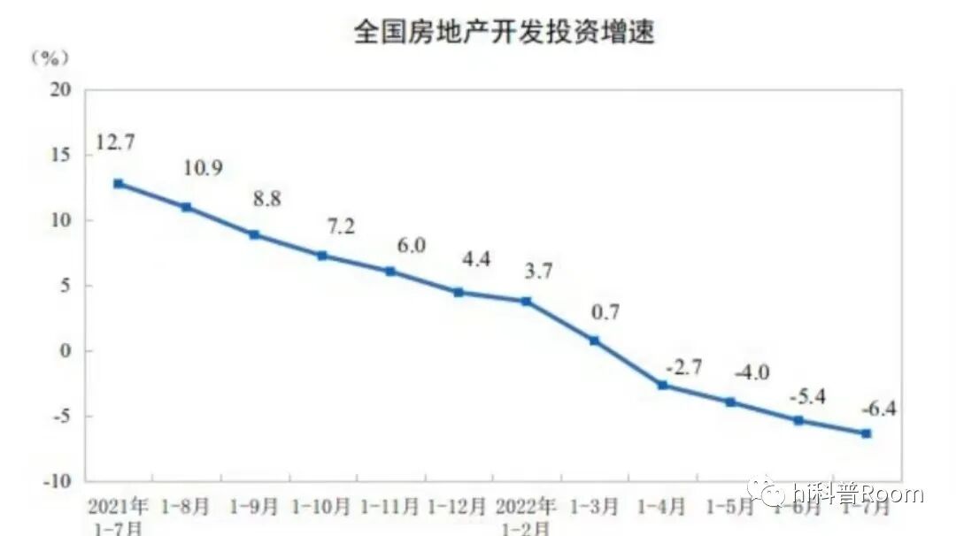由于疫情的影响,服务业、旅游业这种人员密切接触的行业,仍然相当低落;1-7月份,房地产开发投资79462亿元,同比下降6.4%,其中住宅投资60238亿元,下降了5.8%。