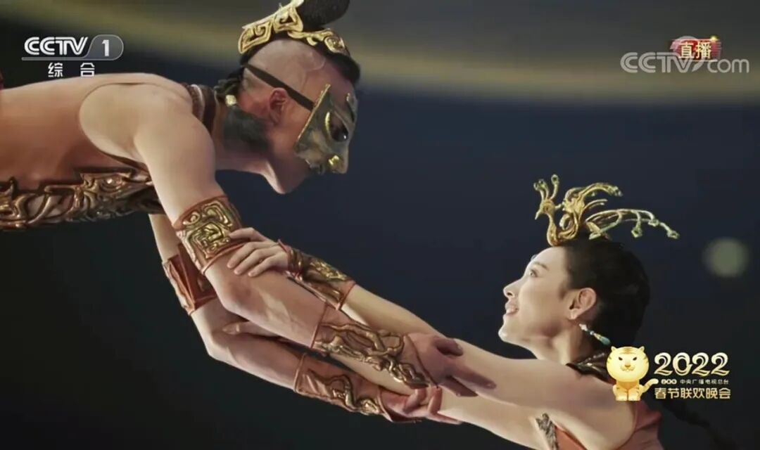 三星堆创意舞蹈《金面》以传统舞蹈结合电影化拍摄手段,展示了青铜文明的绚烂多姿,也带领观众走进了“20世纪人类最重大考古发现之一”的三星堆遗址。
