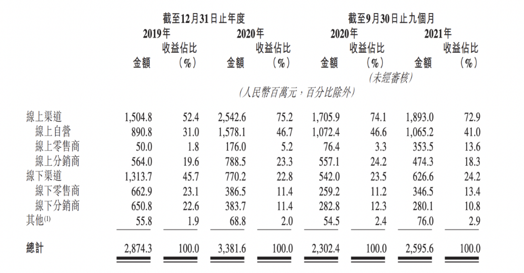 “坚持两条腿走路”,上美集团的线下渠道虽并未放松,但占比在快速缩小。截至2021年9月30日,上美集团已与屈臣氏(其4000多家门店)及557家线下分销商合作,覆盖全中国所有省、市和自治区。