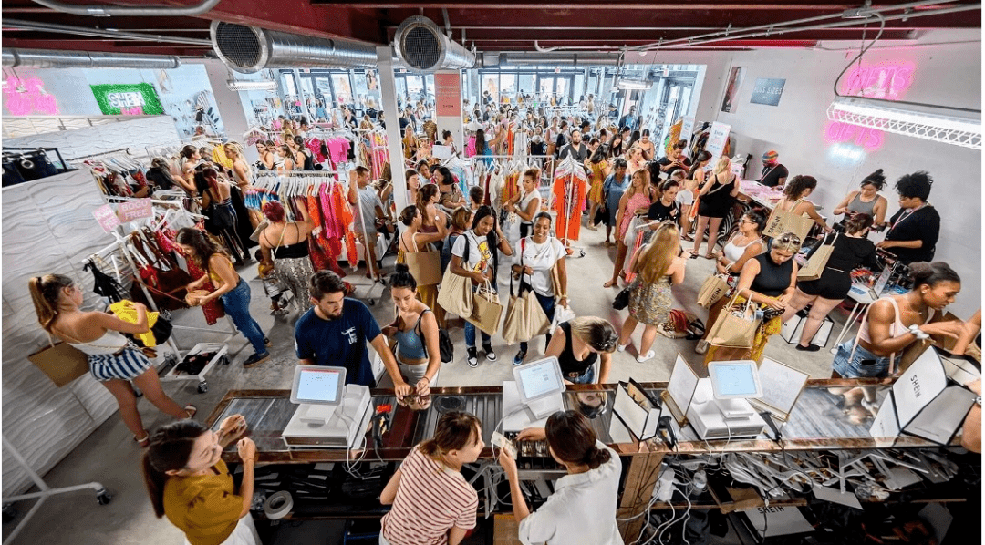 2018年,SHEIN开始尝试线下,在纽约开了第一家快闪店。此后几年,SHEIN的线下店铺在达拉斯、洛杉矶、迈阿密、巴黎、伦敦等多个时尚前沿驻足,虽然快闪店每到一处只短暂停留几天,但多次上演文章开头的景象,线上优势转移到线下。