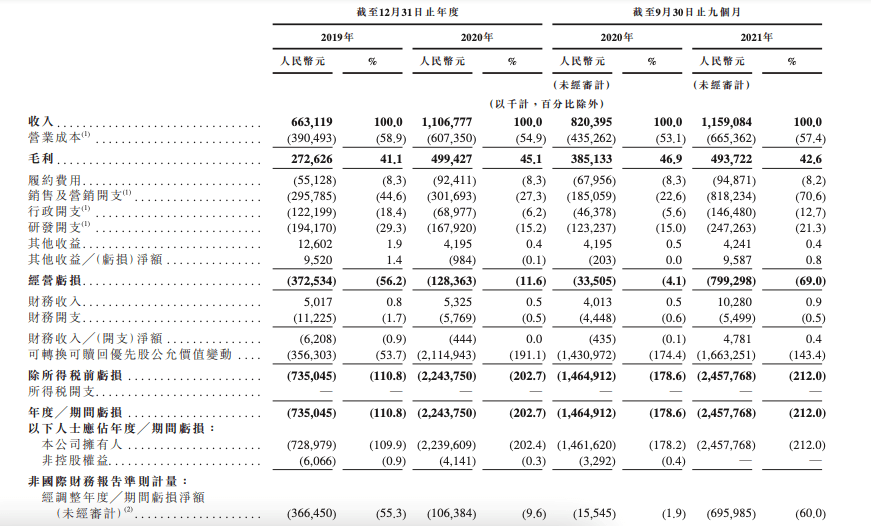Keep招股书显示,2019年、2020年及2021年前三季度,其营收分别是6.63亿元、11.07亿元、11.59亿元,其中2020年的同比增速高达66.9%。
