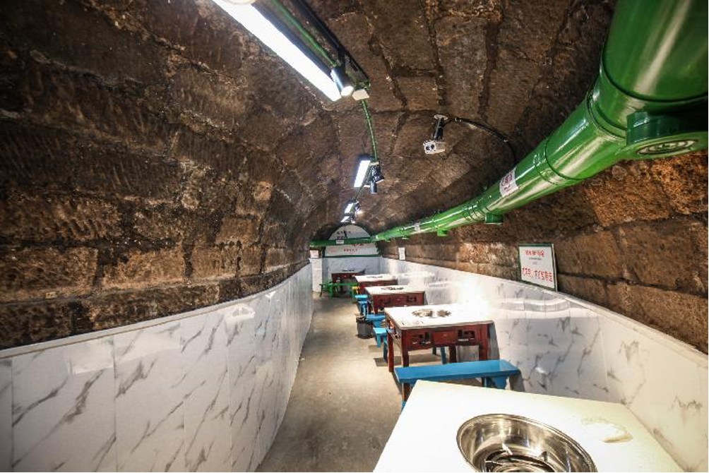 每逢夏季,重庆室外温度很少低于30摄氏度,但防空洞内的气温常年低于室外近10度,搭配空调和排风系统,让顾客可以在最热的天里吃最辣的火锅。正如当地人所说:“昔日避难人防工程,如今美食纳凉福地。”
