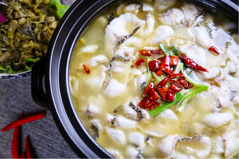 20世纪90年代初,酸菜鱼风靡全国。以草鱼或鲫鱼为主料,配以泡菜等食材煮制,口味适中,是酸辣结合的典范。但酸菜鱼的历史来源众说纷纭,很难考证,有说始于重庆江津的江村渔船,也有说始创于重庆市江津县津福乡的周渝食店,还有说是璧山县钓鱼翁老伴的歪打正着。