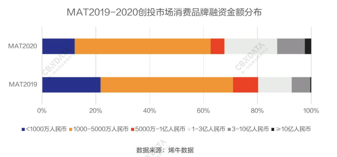 据《2020消费领域投融资趋势报告》显示,从融资轮次来看, 2020年A轮及以前的投资事件占比明显增大。其中种子轮的占比,较2019年翻番。从披露的融资金额来看,2020年亿元以上的投资事件,同比增加41%。