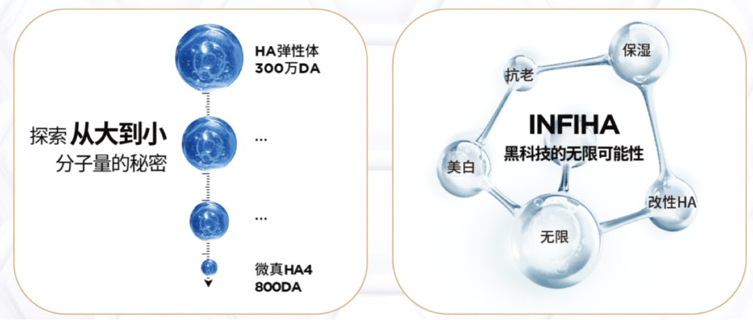据了解,润百颜根据不同分子量玻尿酸的特性,进行了专业的复配,独创INFIHA™英菲智配玻尿酸科技,让活性成分与玻尿酸协同增效,能进一步挖掘和释放玻尿酸护肤的潜能。