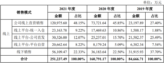 随后,从天猫、京东到抖音、快手,认养一头牛积极布局线上营销体系。招股书显示,从2019年到2021年,其线上渠道销售占比分别为62.3%、77.5%和77.67%。