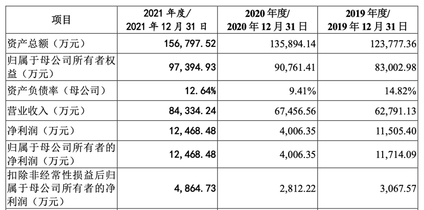 2019至2021年,思维造物实现营业收入分别约为6.28亿元、6.75亿元、8.43亿元,净利润约为1.15亿元、4006.35万元、1.25亿元,其中2020年同比下滑65.81%。