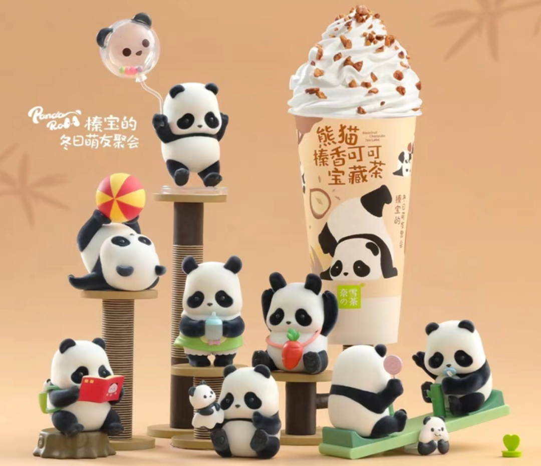 日前,国内收藏玩具品牌52TOYS携手新茶饮赛道开创者奈雪的茶,共同推出联名茶饮新品,“熊猫榛香可可宝藏茶”,该产品以52TOYS原创IP—— Panda Roll为设计原型,已在全国奈雪的茶门店上线开售。