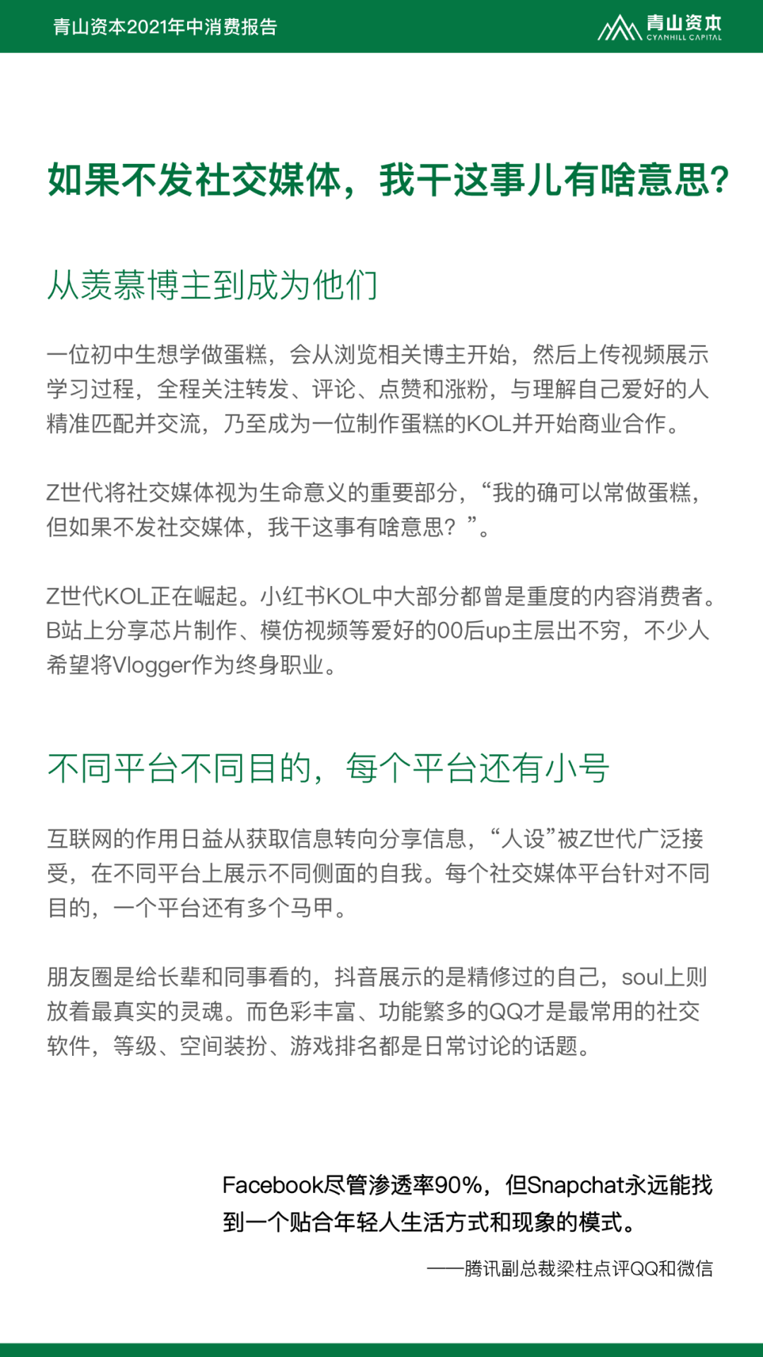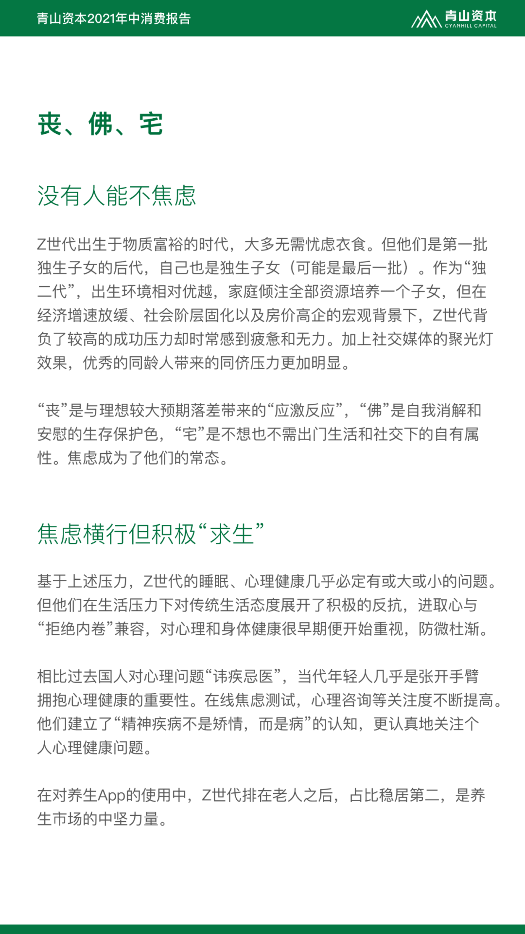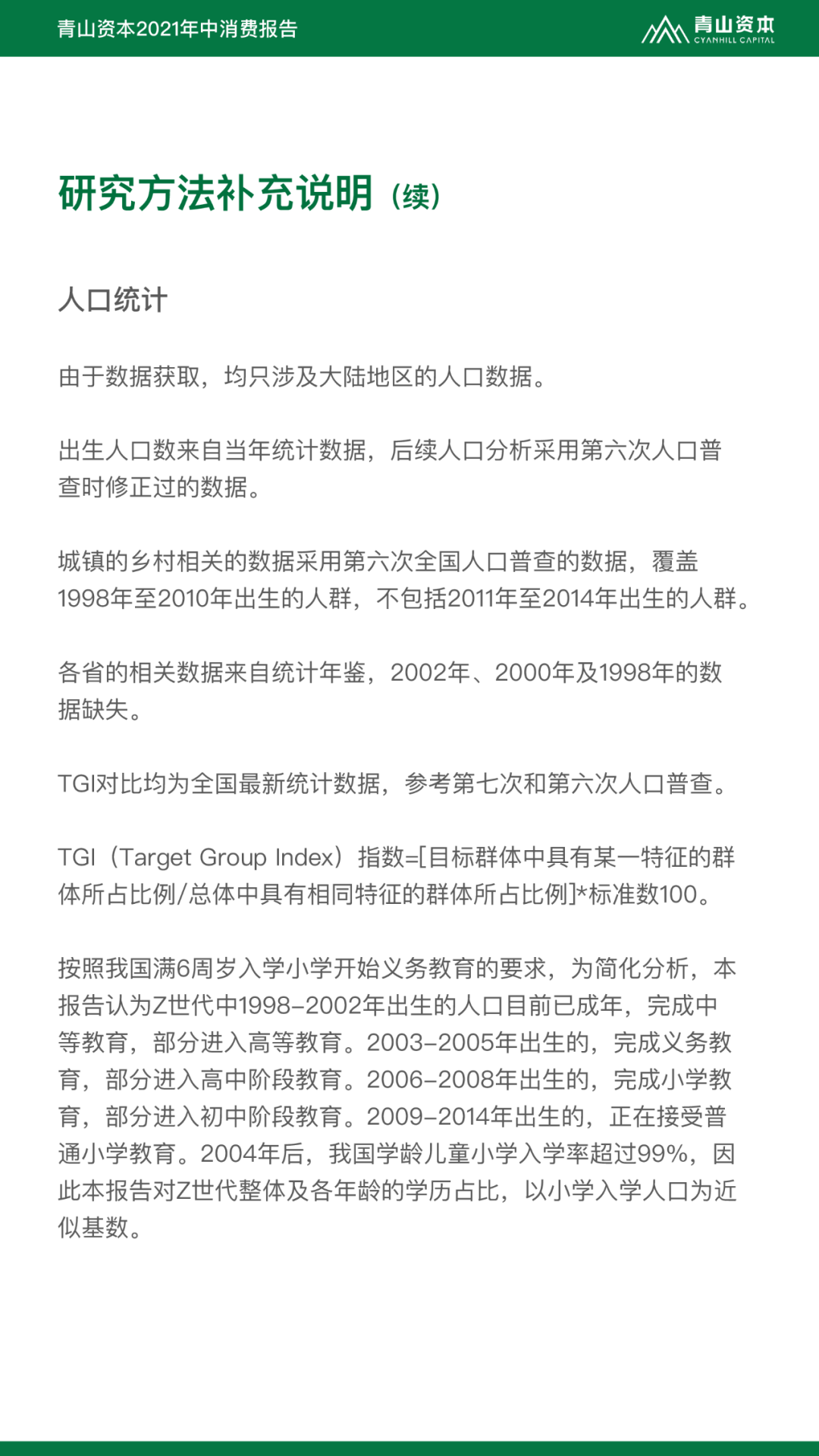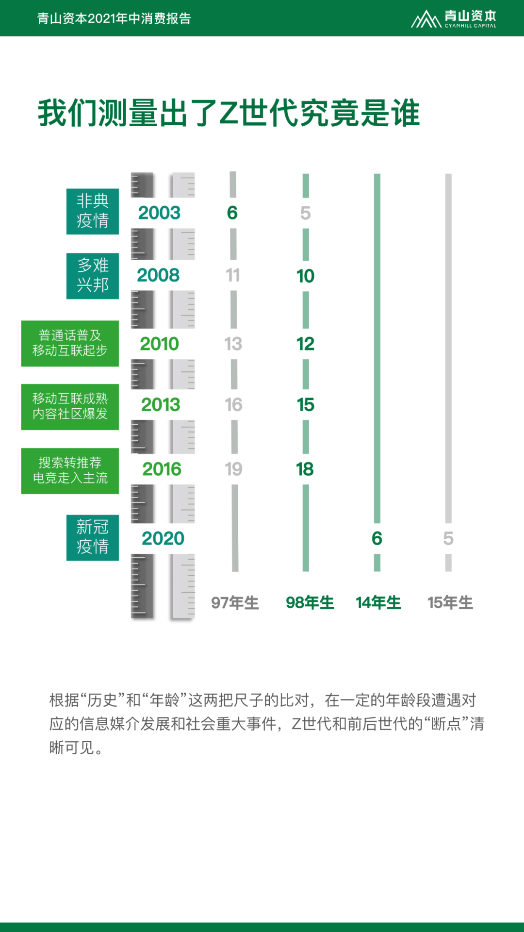 一代人为什么会有这样那样的行为特征,它的来源是什么,是什么导致了他们可能会说“我在线上逛街,或者我喜欢一个人生活,或者我并不在乎钱”,青山资本这个报告尝试去探索因而不仅是果。