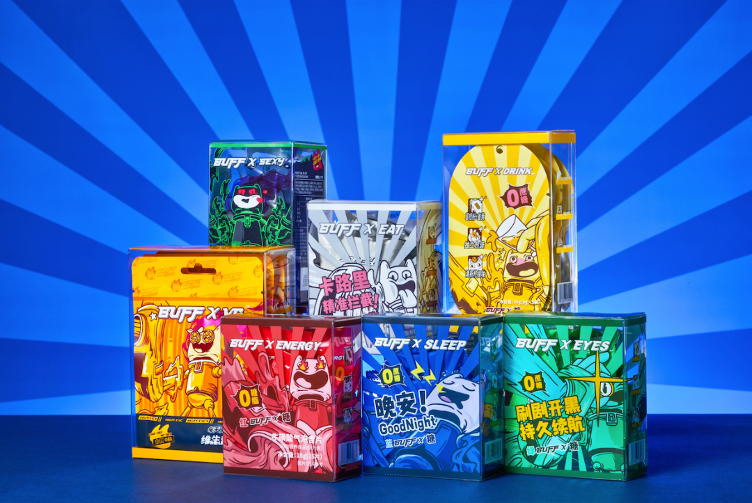 BuffX创始人亢乐透露,在包装设计上,BuffX针对于年轻人进行了问卷调查。最终选择了代表活力的红色与代表睡眠的蓝色作为主打产品的色调,搭配酷炫的熊作IP形象,并将原有包装的英文改成中文,整体风格轻松活泼。