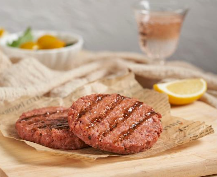 以庖丁造肉鲜香牛排为例,与普通汉堡中的绞碎牛肉相比,饱和脂肪大幅下降,钙、铁等微量元素则增加了16.7%—36.8%,Omega-3含量为170mg/片。