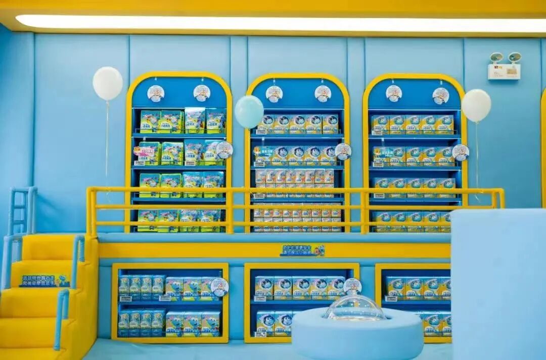 在小鹿蓝蓝店内,不论是场景设计还是货架高度,都是为宝宝量身打造。适合宝宝出入的小门、可爱的试吃餐桌,以及儿童版购物车等元素,为宝宝提供了有吃、有玩、有购物的多元化服务。