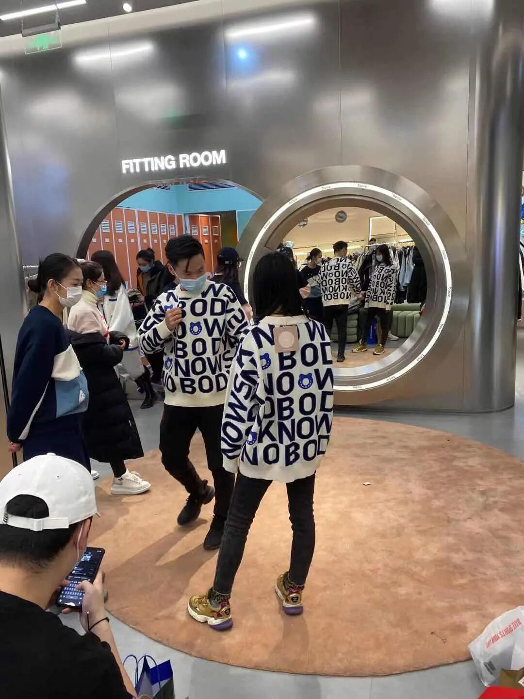 别有洞天的还有试衣间。不同于优衣库试衣间主打的宽敞(不是),bosie的试衣间采用不同主题,诱导顾客在试衣的时候拍照分享,四舍五入就是一个网红打卡地,功能类似于调色师的“美妆蛋墙”。