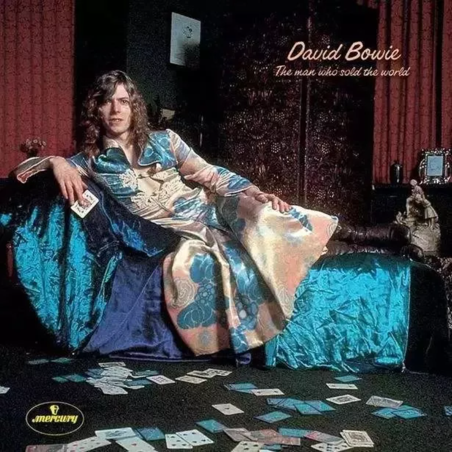 与之相对的,1970年,英伦摇滚歌手“宝爷”(David Bowie)在其《The Man Who Sold The World》专辑封面上一袭长发长裙的造型,成为当时最惊世骇俗的视觉形象之一。