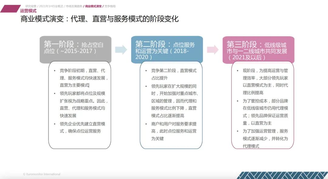 直营模式对于点位质量的要求更高,但也会牵制企业的经营成本;代理模式有助于迅速提高密度,实现资金快速回笼,但也会降低品牌的掌控力。