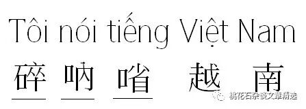 用越南语写出来的“我说越南语”,上面是现代越南国语字,下面是越南字喃和汉字混合的写法