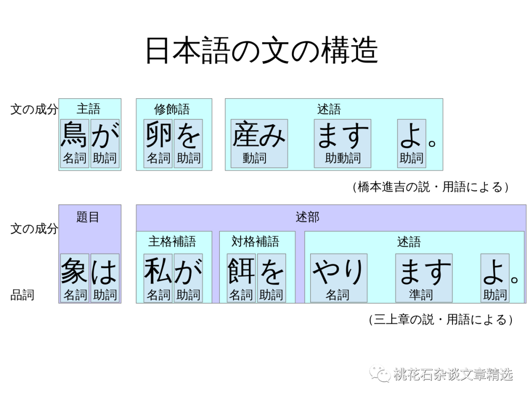 日语的结构,作为一个综合语,它在语法上和汉语是两个体系