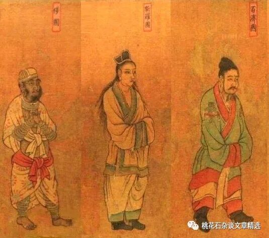 阎立本画的倭国、新罗和百济人像,最左侧是倭国人,可以看到画中的倭国人还完全没有汉化