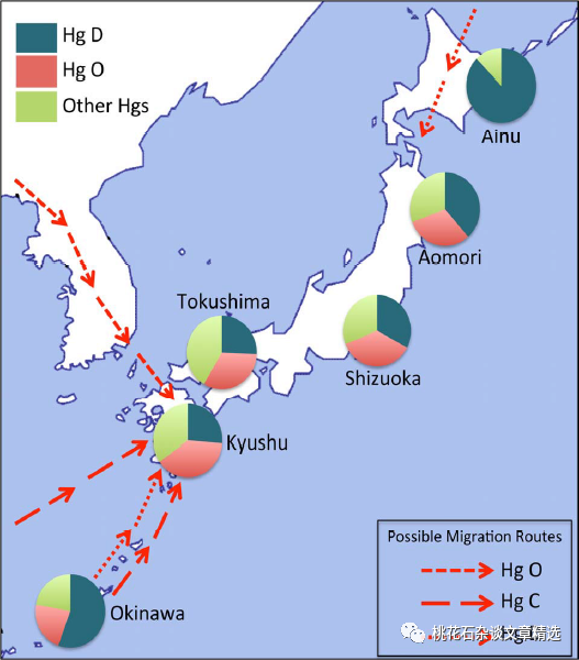 (现代一项对日本人进行的基因研究结果,可以看到日本人由不同族群混血形成是非常明显的)