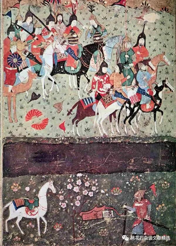 (古画里描绘的扎兰丁逃过印度河的场景)