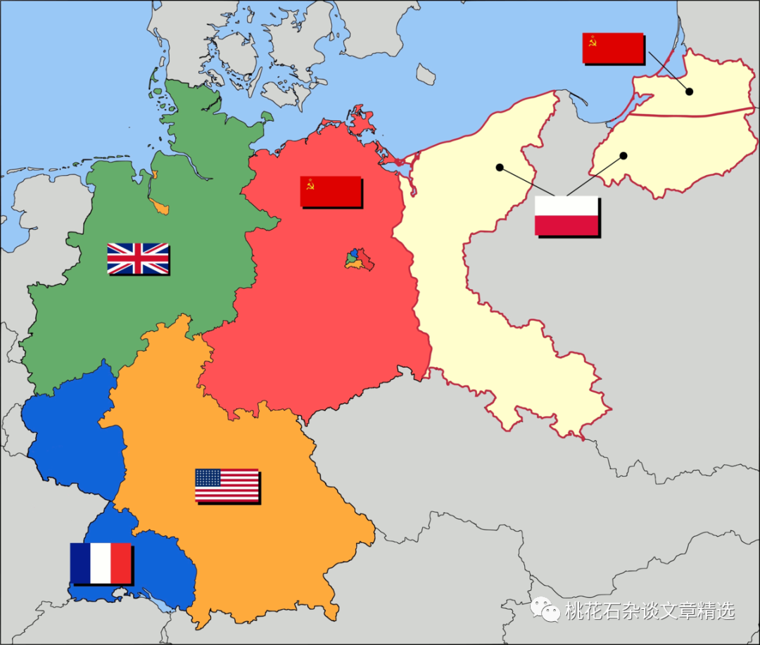 首要的差异当然是德国和日本在投降时的不同状态所决定的。因为德国在二战末期可以说确实是抵抗到了最后一滴血,在德国宣布投降时,基本上德国全境都已经被同盟国所占领,所以德国在战后的占领区划分其实也反映了在战争结束时各国实际的占领区域,至少是苏联和西方国家的实际占领区域。