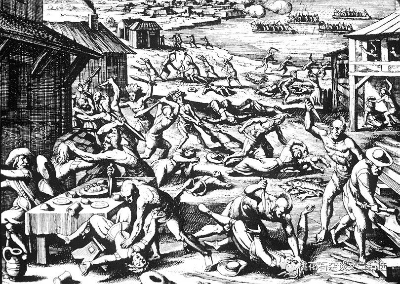 比如,欧洲人对美洲的征服,也可以堂而皇之地冠以文明冲突的名字。但这个文明冲突里却包含有数千万美洲土著的灭绝。同样的事情在澳大利亚和东南亚的很多地区也都发生过,一句文明冲突可以使这一切都显得不那么血腥,将其变成不同文明之间发生接触后一个自然而然的过程。
