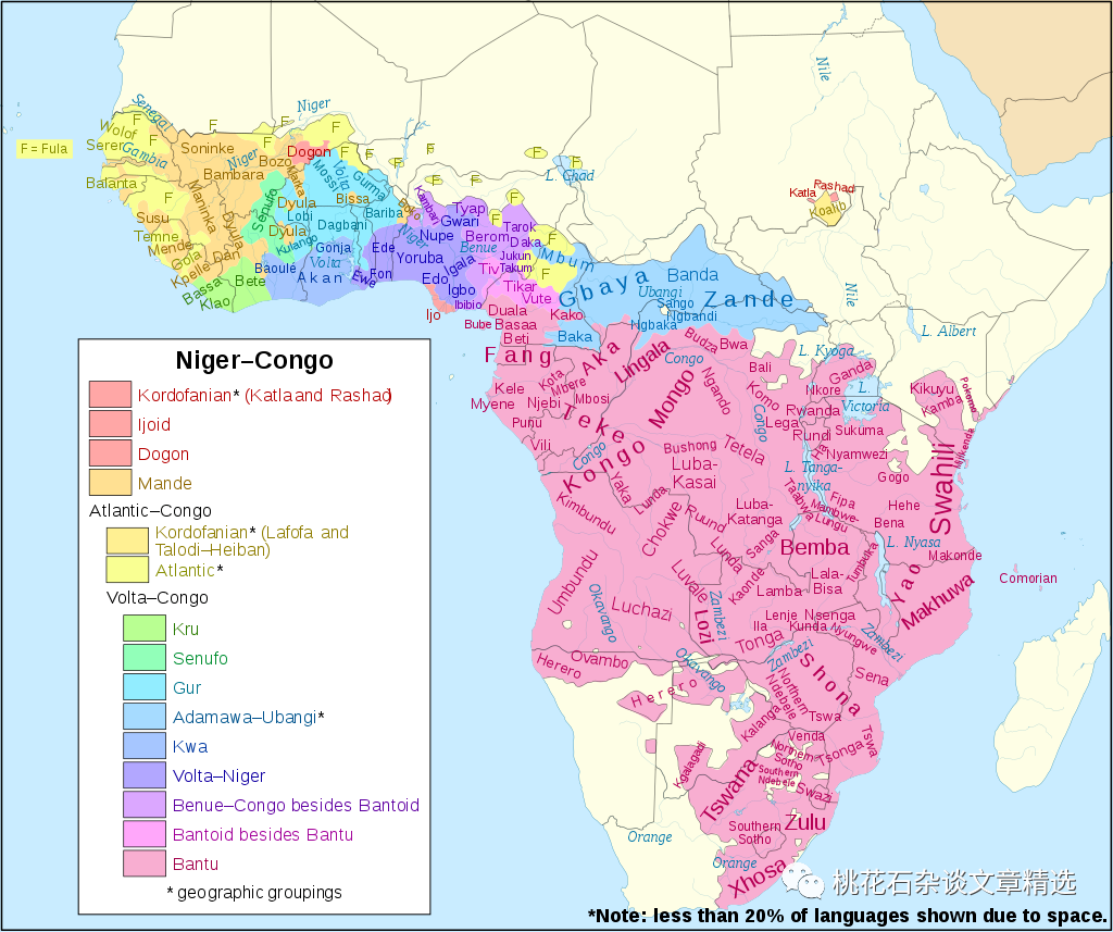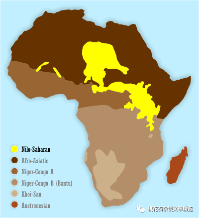 彩色区域是尼日尔-刚果语系大致分布区域,也基本是典型的非洲黑人分布区域