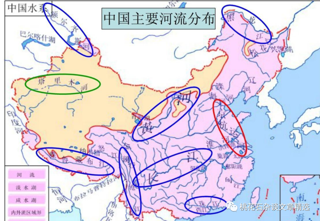 (中国河流分布图,可以看到中国南方明显河流密度比北方高)