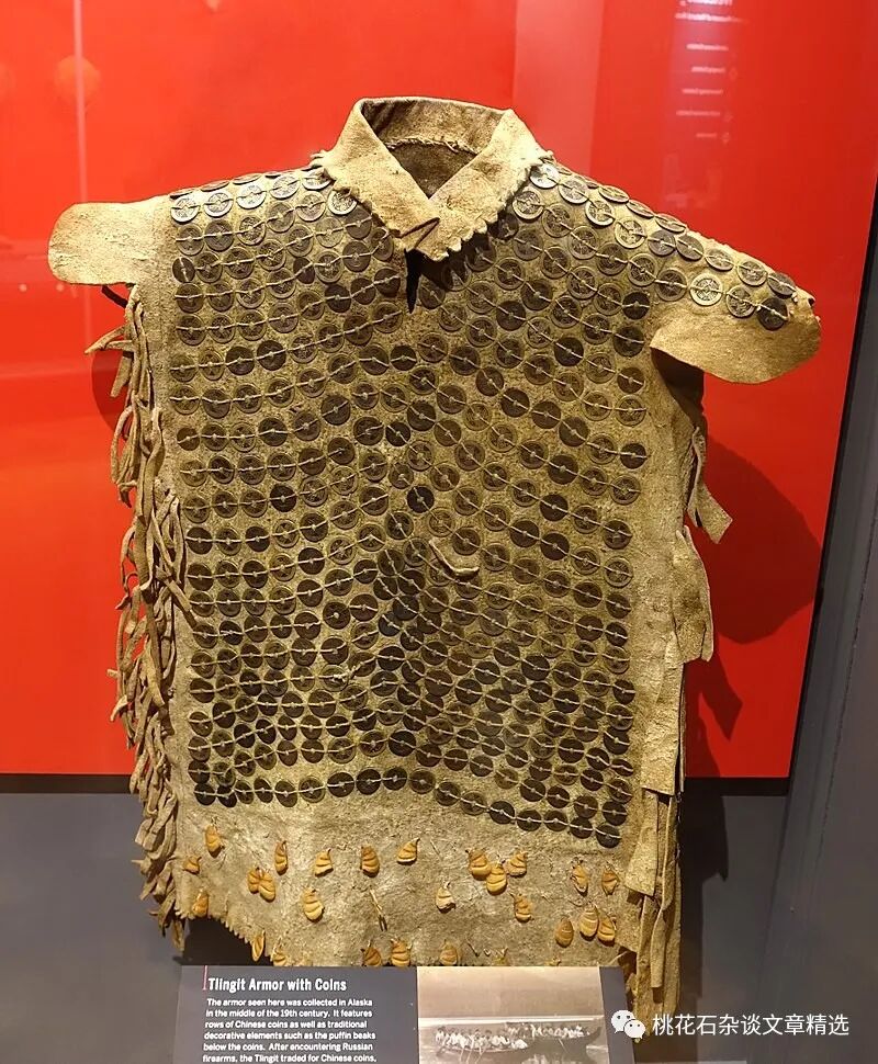 所以特林吉特人使用中国钱币铸造铠甲,很大概率其中也没有藏着什么过于惊人的历史谜团。但中国钱币几百年前就在大洋彼岸的美洲得到当地人的广泛应用,这无论怎么说都还是非常稀奇的一件事,而且用中国钱币做成的美洲土著人铠甲也绝对是极具特点的古物,所以这种特林吉特铠甲在现代也成为了相当数量的美洲博物馆热衷的藏品。根据一些资料,目前美国纽约自然史博物馆、芝加哥菲尔德自然史博物馆以及美加的其它一些博物馆中都收藏有这种中国铜钱铠甲。(图片来自网络,图片版权归其原作者所有)