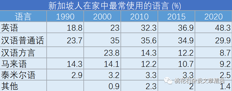 (新加坡的语言变化趋势表,可以看出说英语的新加坡人比例上升明显)