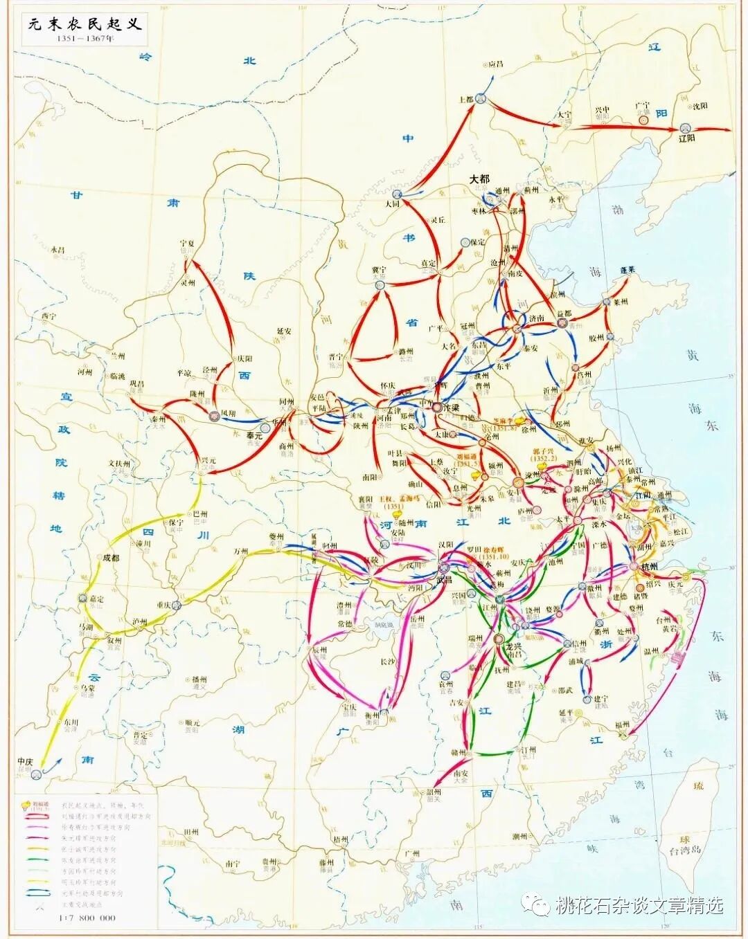 但从公元1344年开始,元朝遭遇多次天灾,多地爆发饥荒,导致元朝早期积累的民族矛盾集中爆发,先是方国珍起事,后来刘福通的红巾军等又跟上,天下陷于大乱。而此时蒙古贵族内部竟然也出现了多次内乱。首先是蒙古漠北阳翟王发动叛乱,进兵上都。然后是来自河南的蒙古军阀李察罕和来自四川的蒙古军阀孛罗帖木儿在河南周边互相攻伐。后来孛罗帖木儿竟然率川军攻入元大都北京,挟持元顺帝,并迫使元朝太子爱猷识理达腊逃到太原王保保大营中。再然后元太子又和王保保一同进兵大都,致使孛罗帖木儿被杀。之后顺帝封王保保为河南王,期望他去镇压朱元璋等反元起义,但他却在河南、山东和陕西等地和李思齐、张良弼等亲元军阀混战,使元朝再也无力抵抗江南义军的进攻。