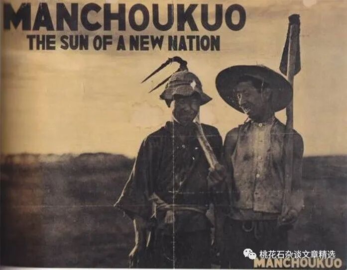 (伪满洲国傀儡特性贯穿始终,这幅伪满宣传画展现的是殖民中国东北的日本拓殖团成员)