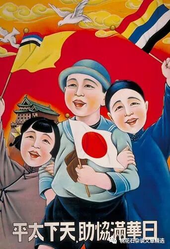 (伪满洲国的宣传画,没有任何清朝元素,相反处处都是日本元素)