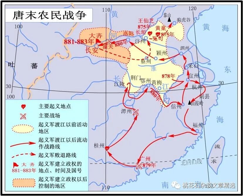 这段话的前半句相信大家都能理解,因为发生在唐朝末年的黄巢之乱确实从根本上动摇了唐朝的统治。但后半部分“祸基于桂林”恐怕就让很多朋友摸不着头脑了,这黄巢是山东曹县人,他起兵是在山东荷泽,怎么《新唐书》会说祸起于桂林呢?这是因为,在欧阳修等《新唐书》作者看来,黄巢之所以会起兵反唐,其实跟之前发生的一连串历史事件是有直接关联的。