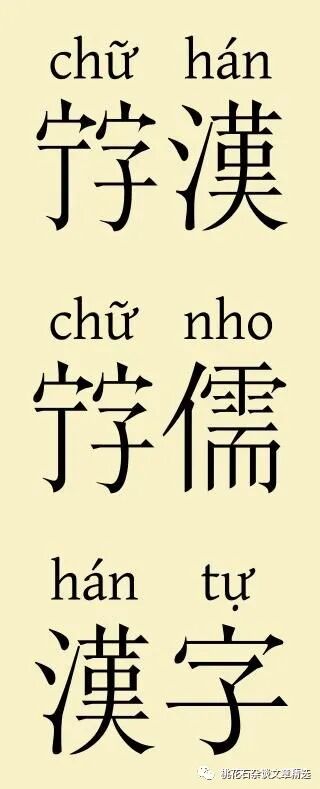 用越南国语字、喃字和汉字书写的“汉字”(儒字)一词