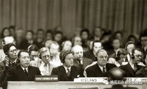 (1950年,中华人民共和国代表伍修权(前排左一)曾应邀出席联合国大会)