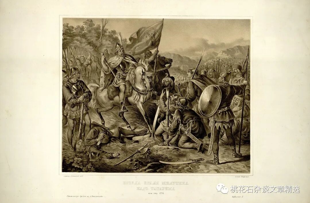(描绘欧洲君主击败金帐汗国军队的古画)