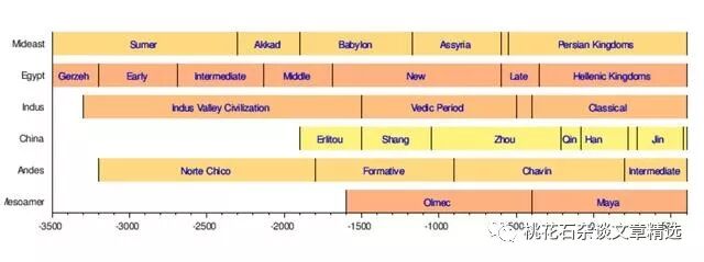 传统上,历史学界普遍认可以下三个独立的文明起源地,即: