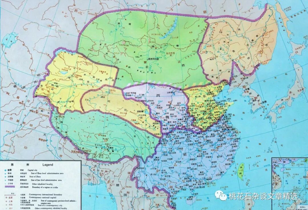 南北朝时期的地图,图中的东魏、西魏都是拓跋鲜卑建立的政权