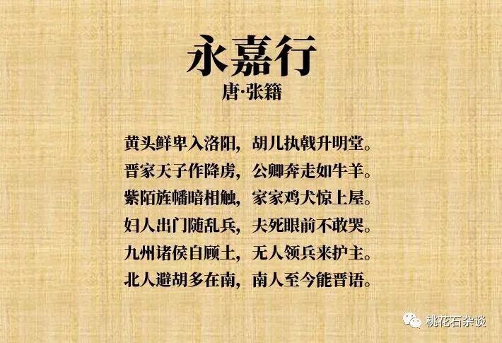 另外,很多唐诗也都是“借古喻唐”的。比如《长恨歌》等。而《永嘉行》其实也很有可能采用了这种手法,即虽然字面上说的是西晋末年,描绘的具体情形却可能是张籍出生前11年间长安两次失陷的情况。