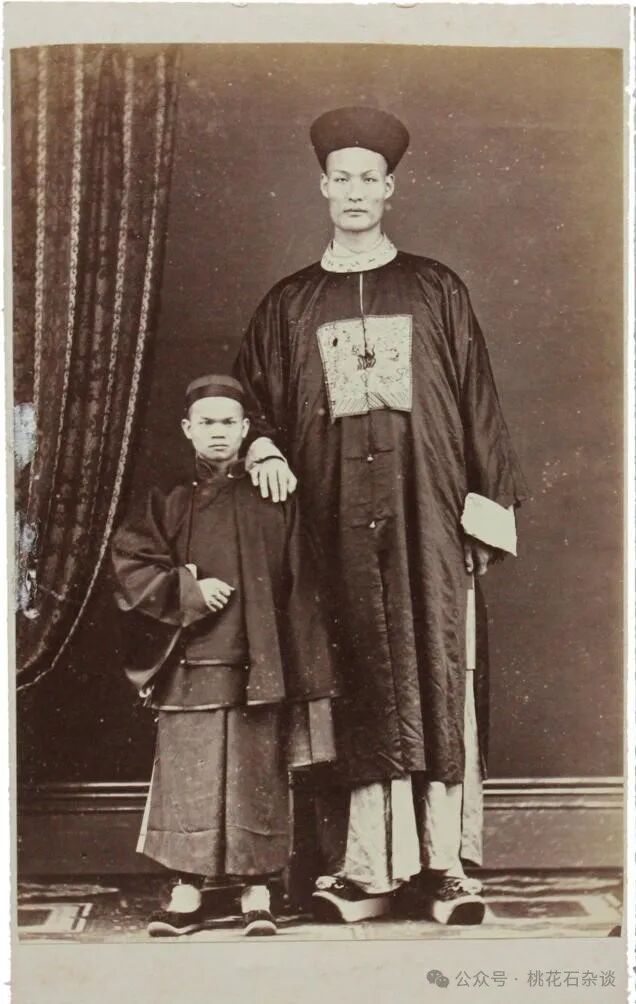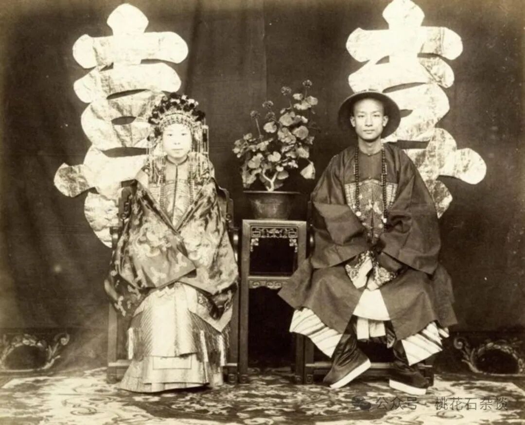 两位清朝重臣后代联姻的结婚照,男女双方分别为曾国藩的孙女曾广璇和李鸿章的侄子李经馥,在当时这场婚姻绝对是超重量级。不过曾广璇虽然出身名门又嫁入名门,却也是个薄福之人,仅仅29岁就去世了。照片拍摄于公元1880年前后。